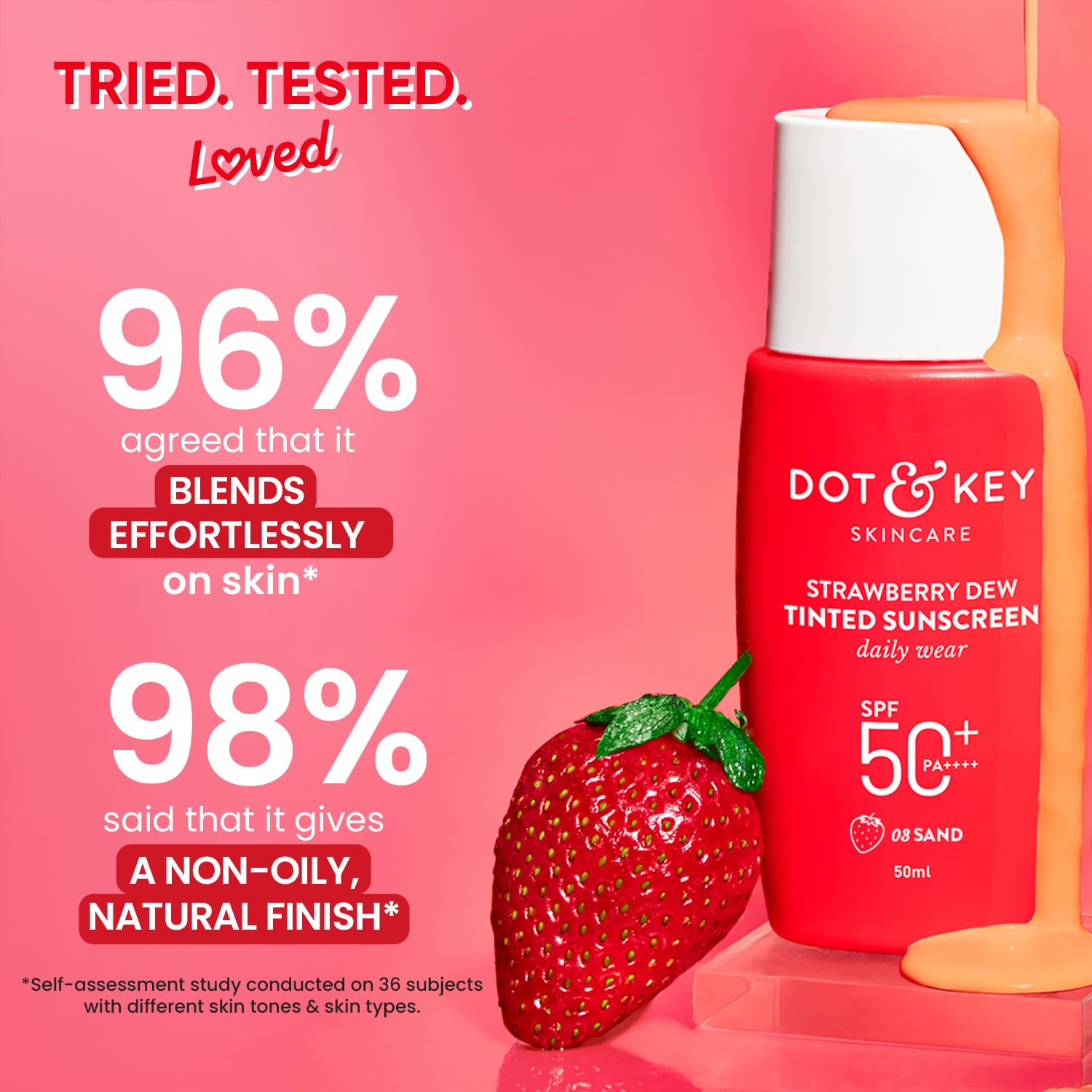 Dot & Key Strawberry Dew Tinted Sunscreen SPF 50+ Pa++++ - 03 Sand | Protection Against UVA & UVB | Broad Spectrum, Water & Sweat resistant | For All Skin Types | 50ml