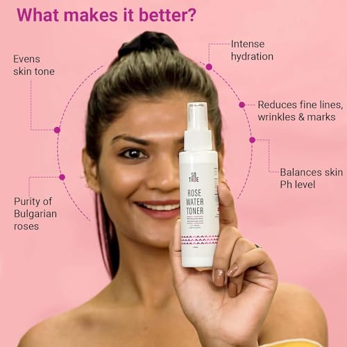 The presence of aloe vera cucumber green tea basil and Bulgarian roses makes our Sotrue Rose Water Toner extremely healthy and safe for your skin. These ingredients not just help moisturize and repair the skin but also prevents it from any further damage.