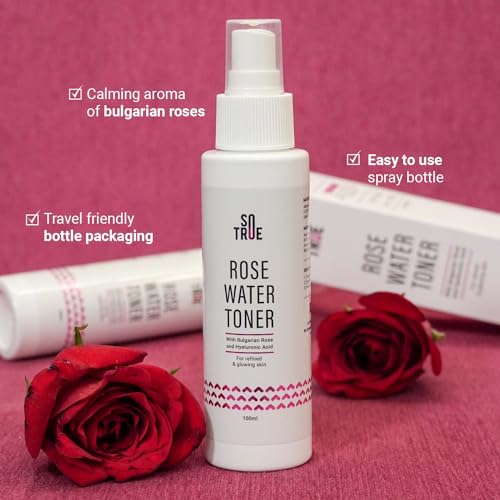 Sotrue Rose Water Spray For Face | Alcohol Free Face Toner with Bulgarian Rose & Hyaluronic Acid 100ml | Skin Refining, Pore Tightening | Suitable for Oily, Acne Prone, Dry and Normal Skin