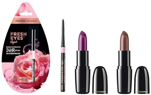 FACESCANADA Weightless Cream Finish Lipstick - Sweet Mocha & Weightless Creme Finish Lipstick - Imperial Plum & Fresh Eyes Kajal 0.35G