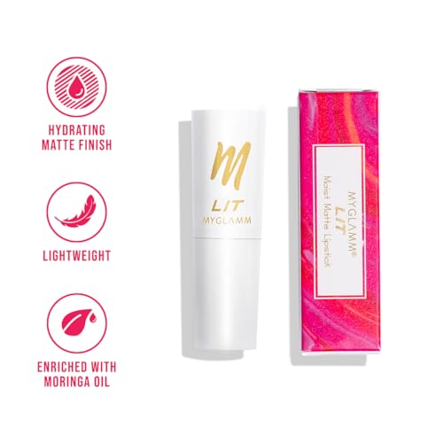 HomeBeautyLipsLipstickMyGlamm LIT Moist Matte Lipstick - Red Avenue (Chilli Red Shade)| Long Lasting, Pigmented, Hydrating Lipstick with Moringa Oil and Vitamin E (4.2g)