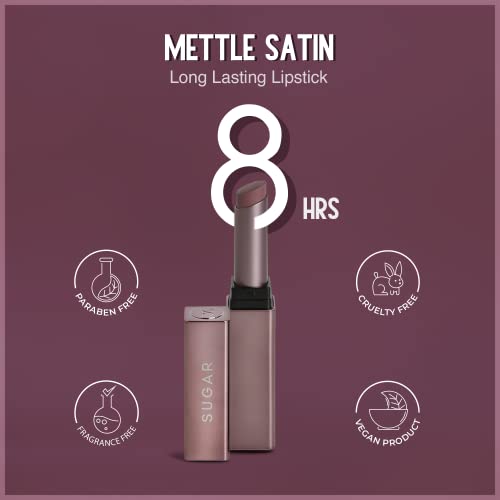 SUGAR Cosmetics - Mettle - Satin Lipstick - 07 Gabriella (Soft Dusty Nude) - 2.2 gms - Waterproof Lo