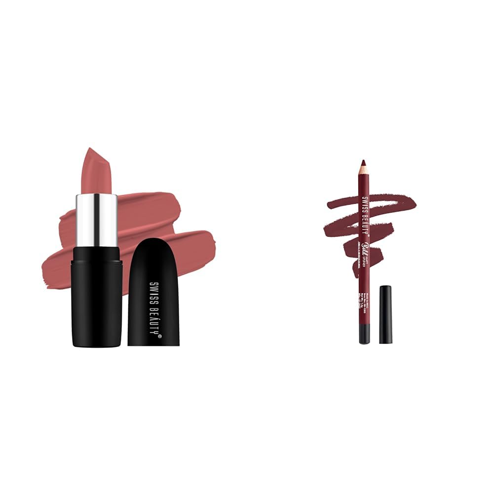SWISS BEAUTY Pure Matte Lipstick | Long Lasting, Hydrating & Lightweight Lipstick | Bare, 3.8gm| & Pure Matte Lipstick | Long Lasting, Hydrating & Lightweight Lipstick | Bare, 3.8gm|