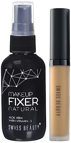 HomeBeautyMakeup KitsMakeup CombosSWISS BEAUTY Fixer Natural Aloe Vera with Vitamin-E Face MakeUp, White, 50ml and Professional Liquid Concealer, Warm Sand, 5.6g