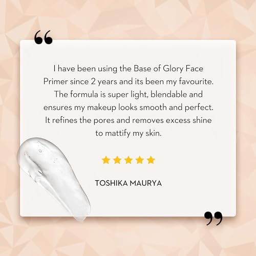 LIGHTWEIGHT: The Base Of Glory Face Primer is a plush gel-based formula that feels like a second-skin. Its airy silky and weightless texture layers onto skin without an added weight or a greasy after-feel