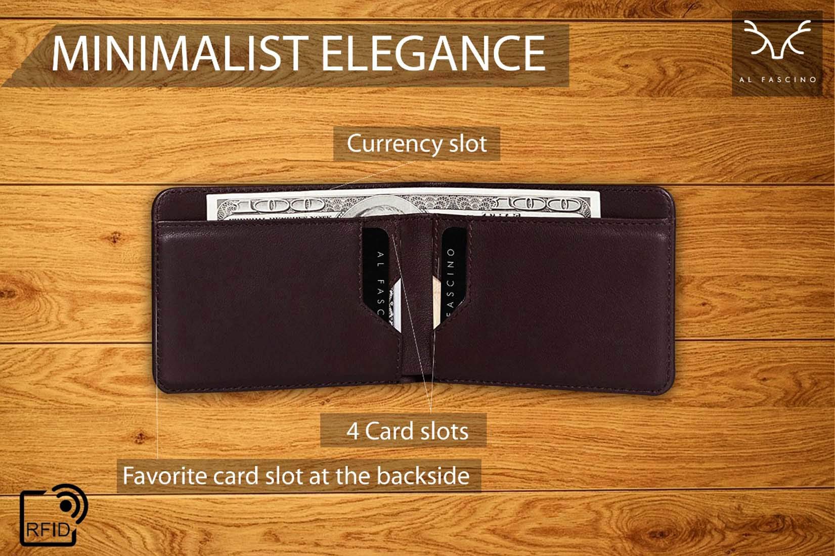 MINIMALIST DESIGN Sleek build of the wallet looks classy and accommodates 3 Credit / Debit cards 1 Spacious Currency Compartment and 2 Hidden Pockets