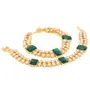 I Jewels Gold Plated Indian Wedding Bollywood Bridal Anklets Payal Embellished with Green Stones & Faux Kundans for Women/(A016)