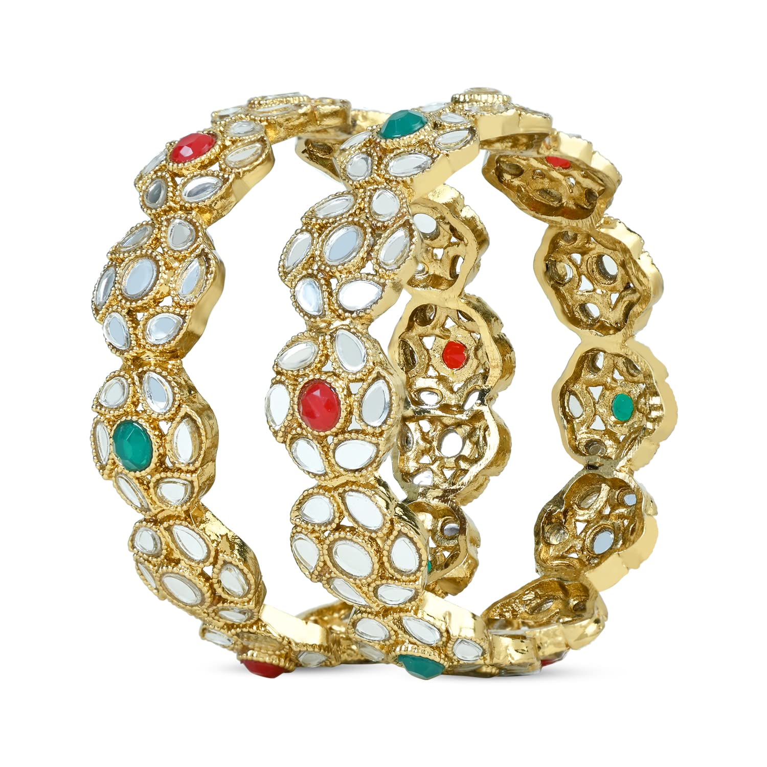 I Jewels Traditional Gold Plated Kundan Kada Bangles for Women/Girls