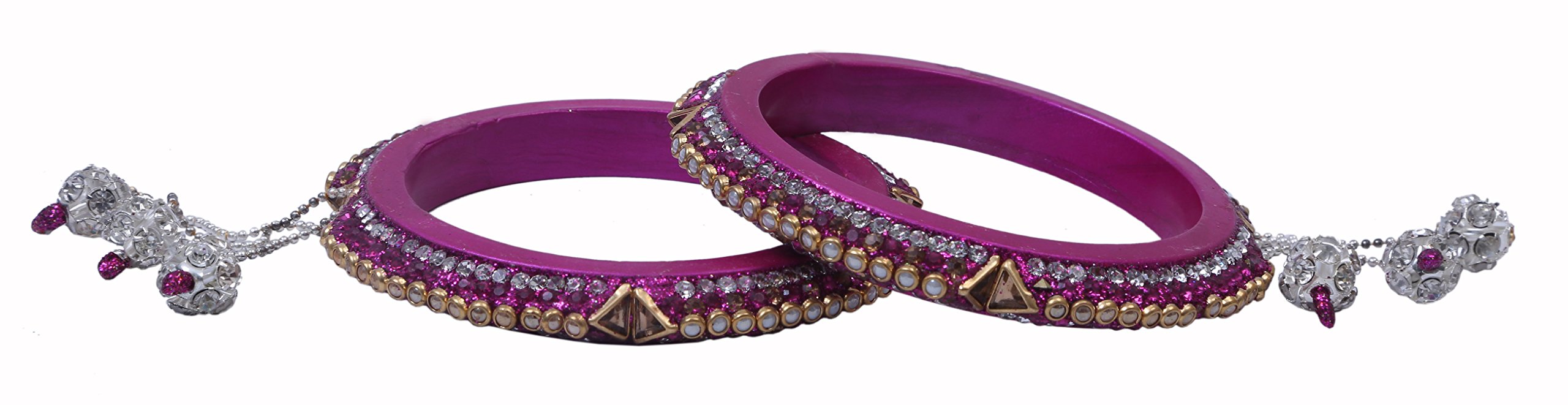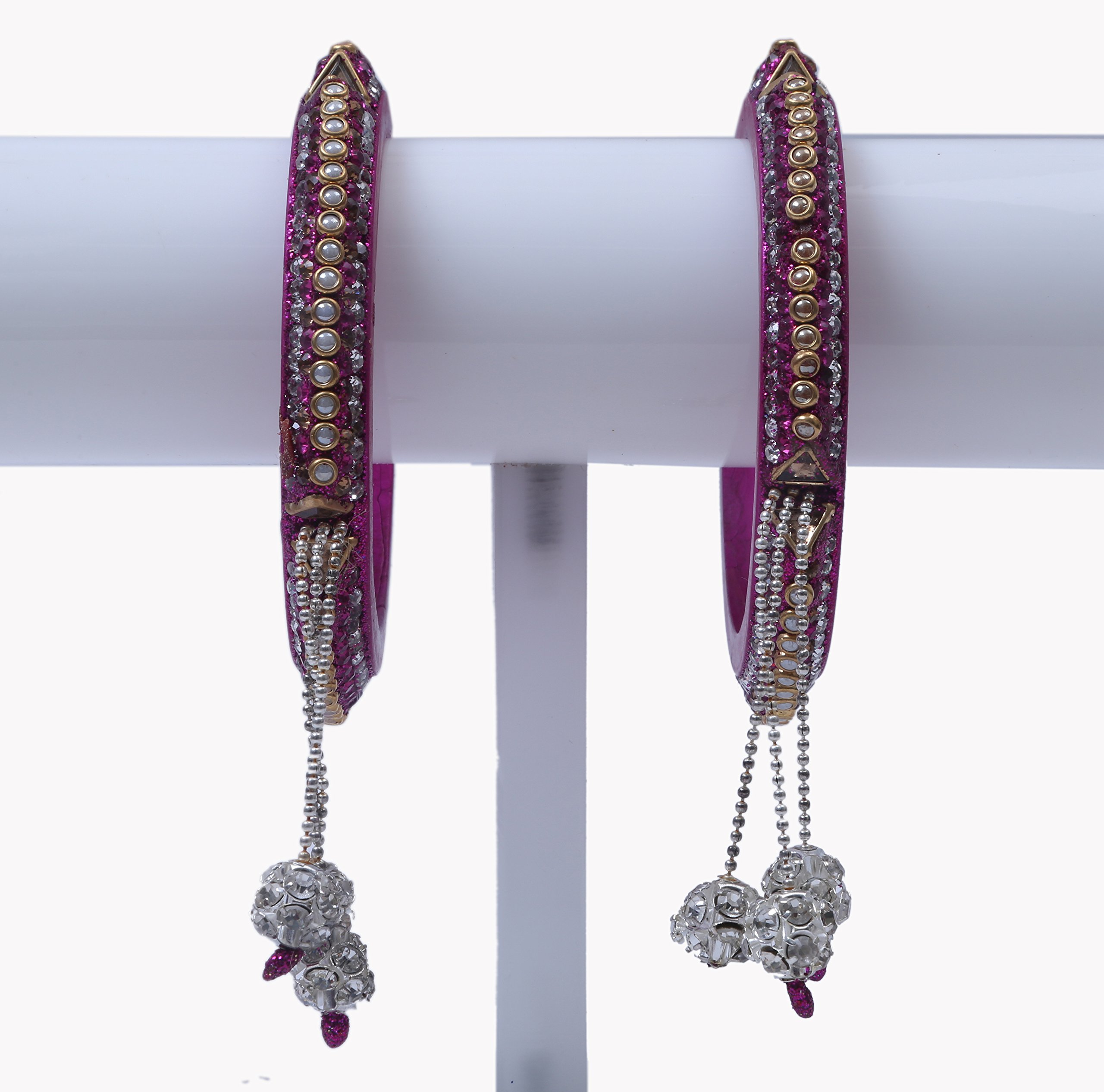 LAC BANGLES Lac Bangadi Bangles with Latkan Drops (Set of 2)