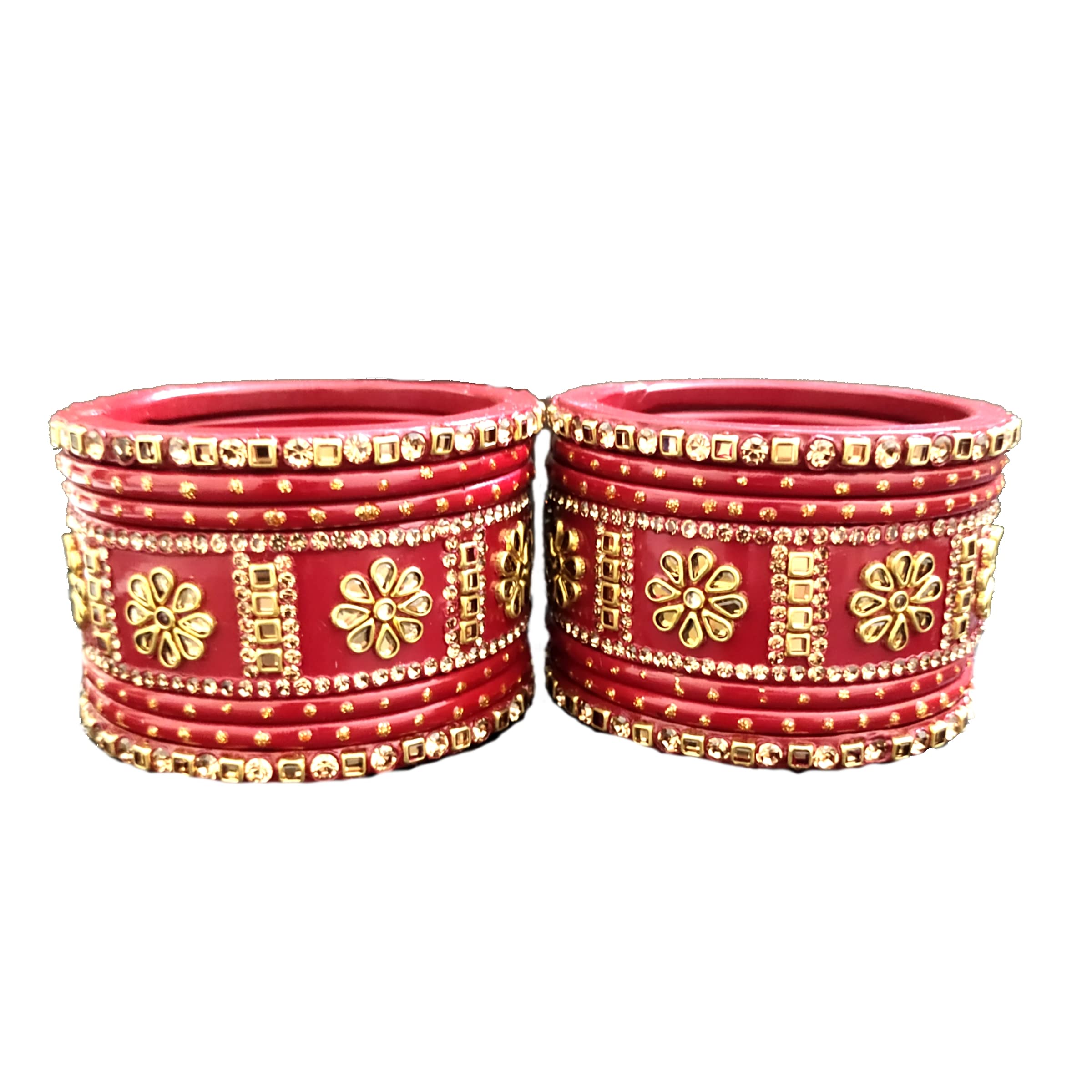 LAC BANGLES Lac Lakh Lahethi Bangles for women with Beautiful Traditional Red Chudi set