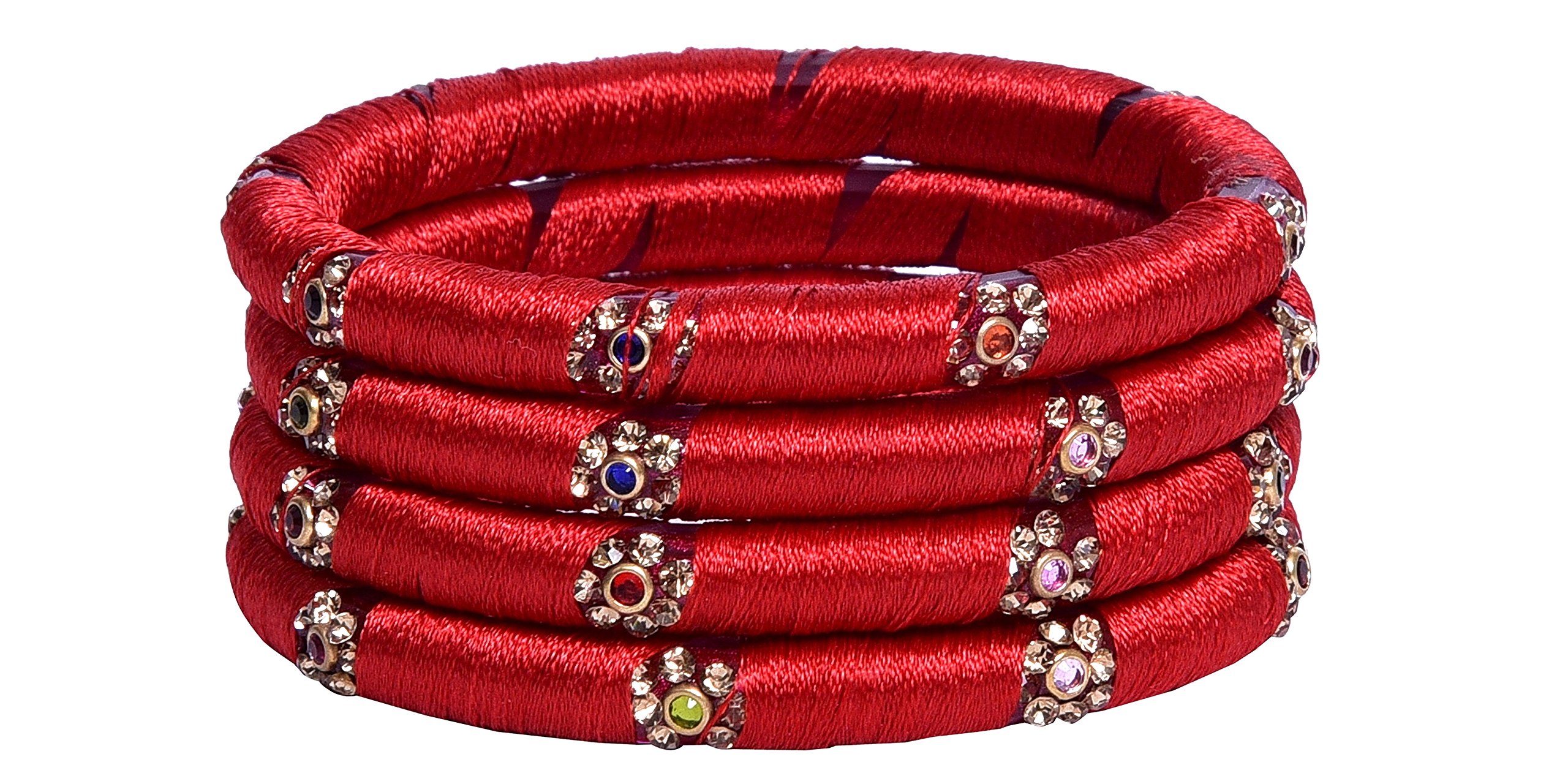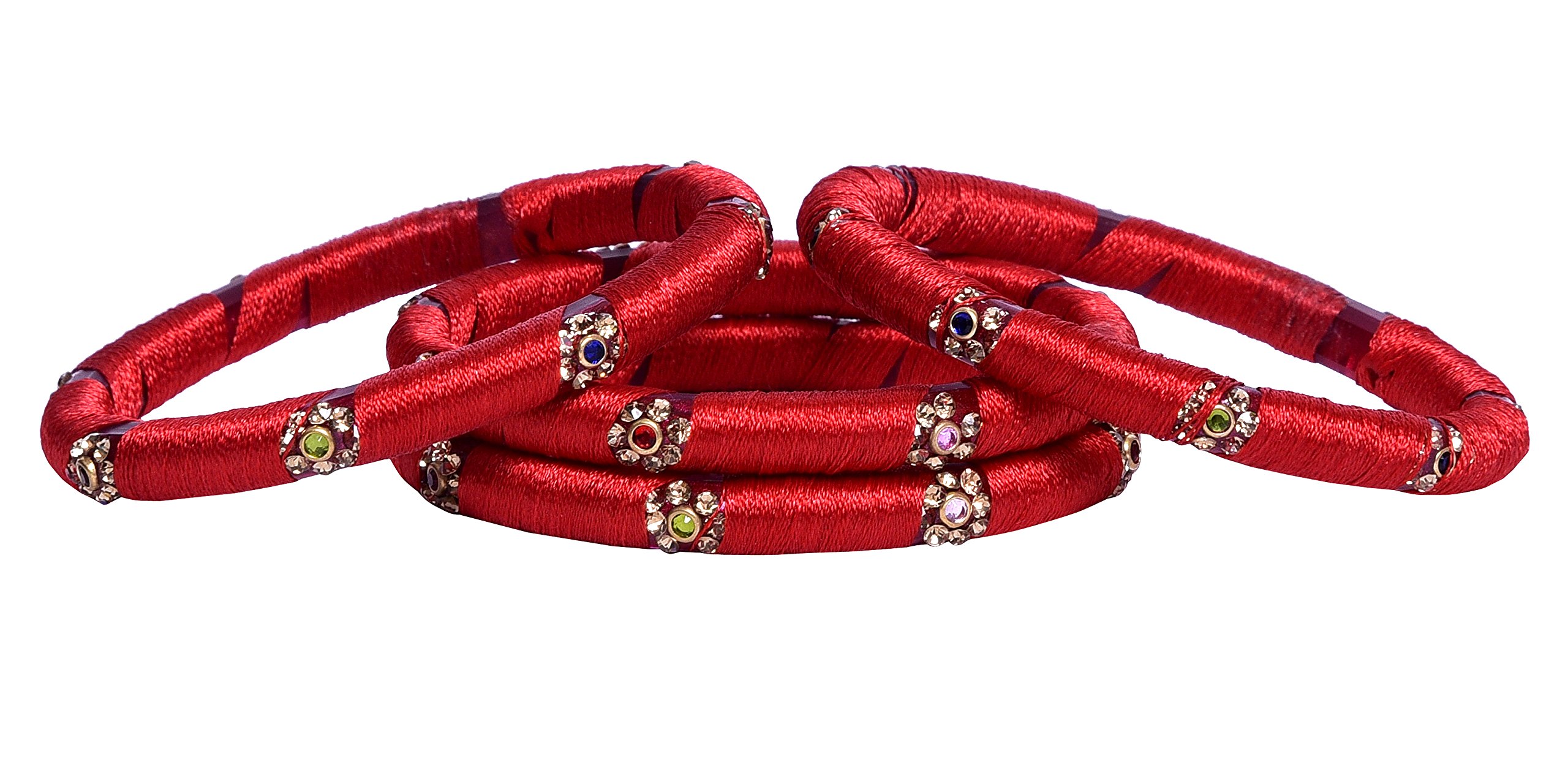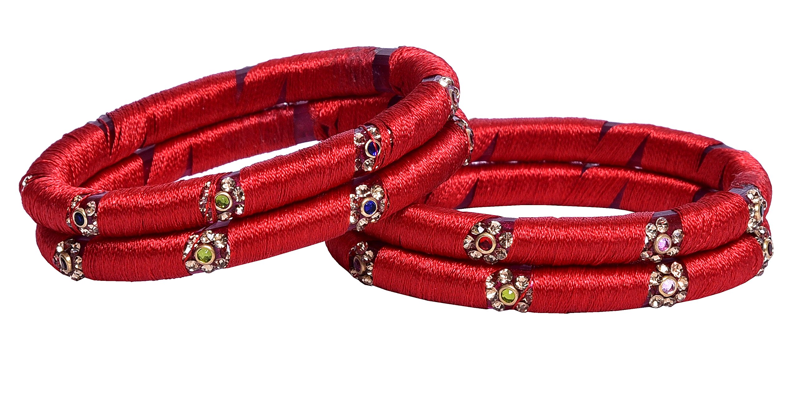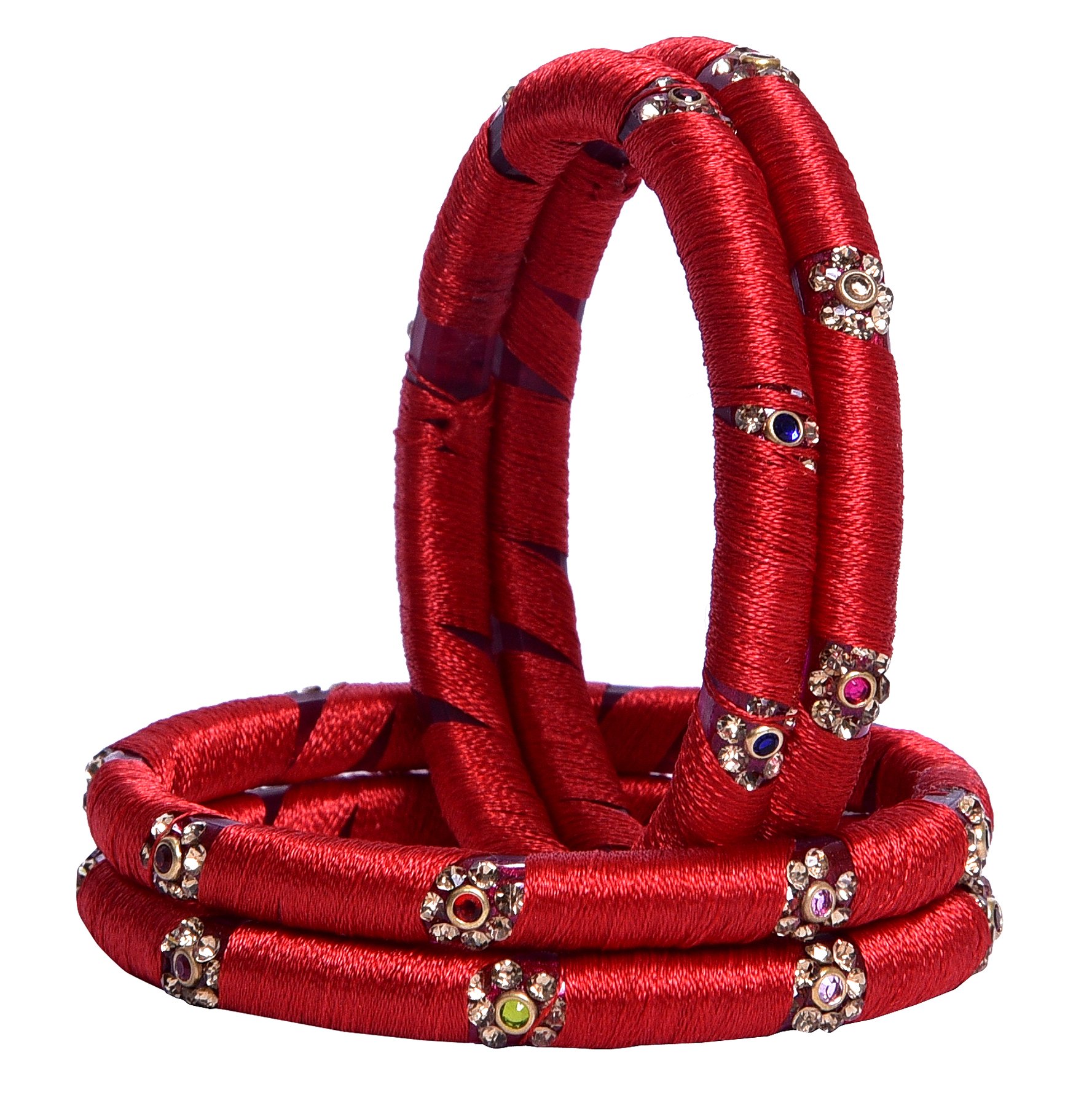 LAC BANGLES Silk Thread Acrylic Bangles for Girls Women - Set of 4
