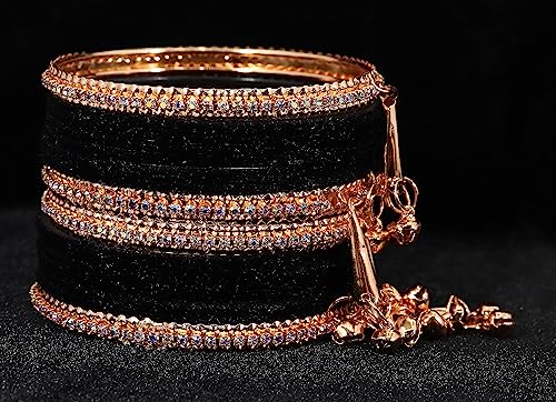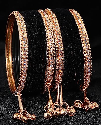 HomeFashionBanglesMetal with Zircon Gemstone and Velvet Studded Bells Latkan Bangles Set For Girls and Women I Latkan Bangles Premium Bangle Bracelet Set I Pack of 16 Bangles