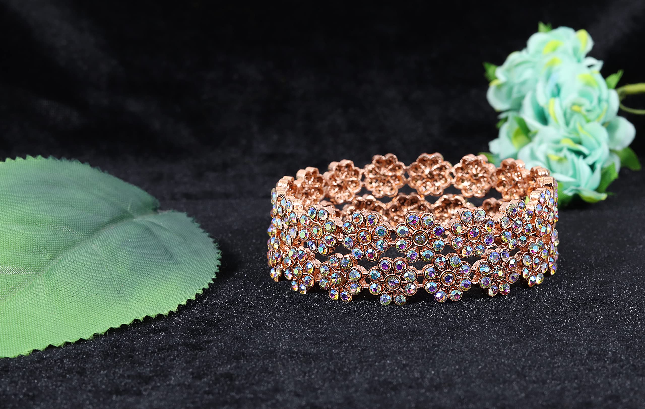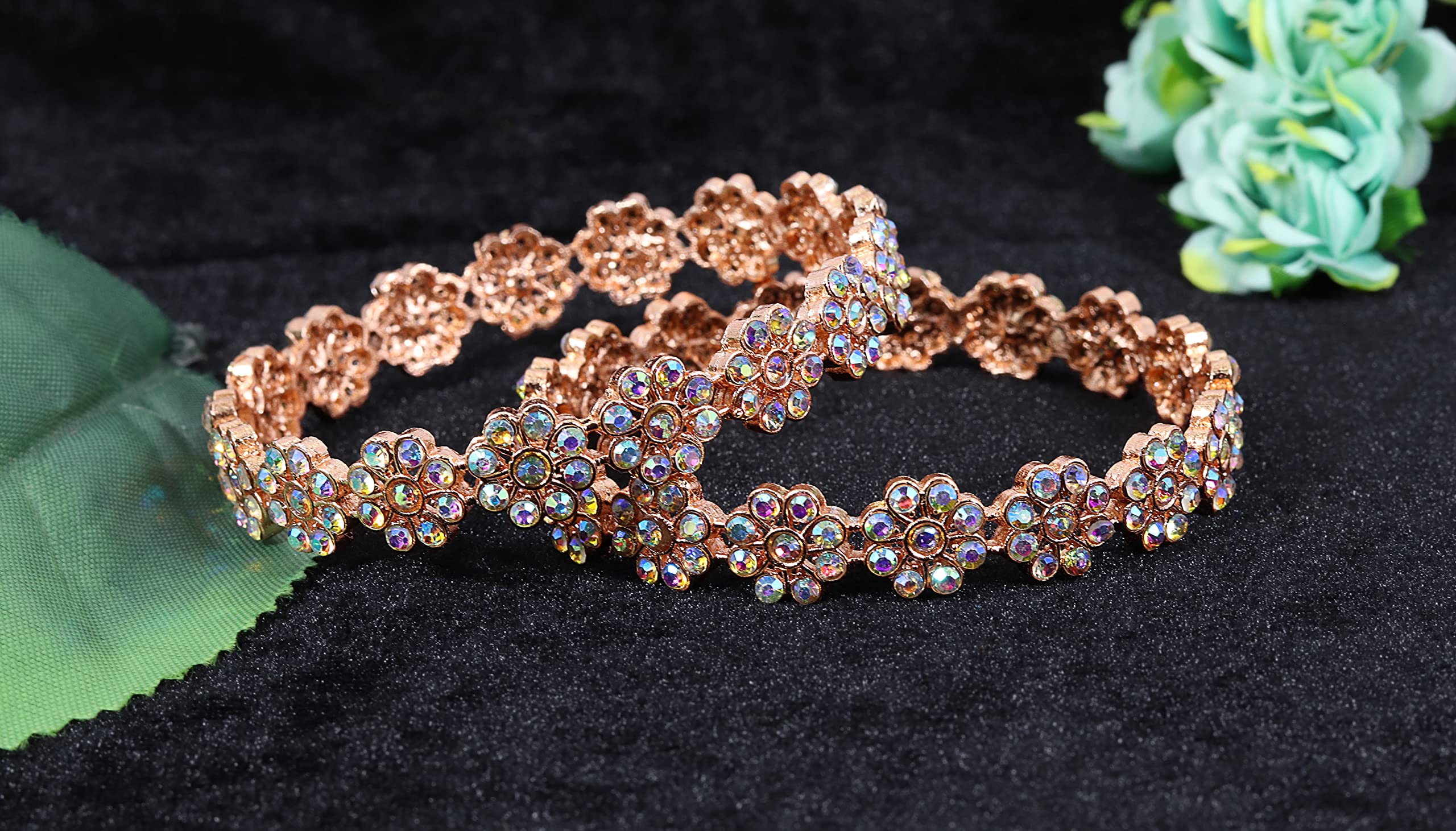 NMII Alloy With Zircon Gemstone and Flower Pattern Glossy Finished Kada set for Women and Girls (Pack of 2 Kada set)