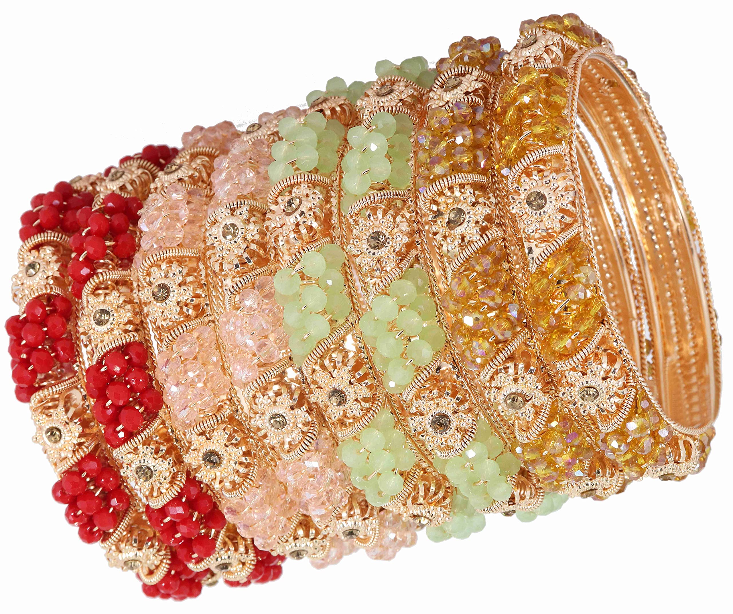HomeFashionBanglesNMII Non-Precious Metal With Base Metal And Zircon Gemstone Or Colourful Beads Studded On Flower Glossy Finished Kada Set For women and Girls, 2.4, Metal, Zircon Gemstone