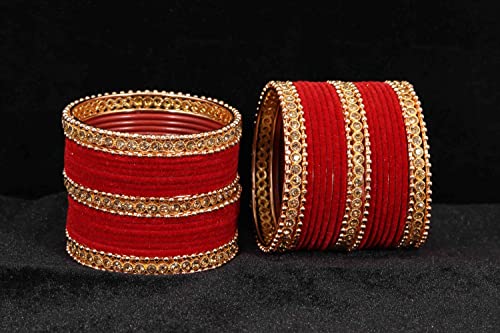 HomeFashionBanglesNMII Non-Precious Metal with Base Metal Zircon Gemstone and Rosegold Ballchain Studded Glossy Finished Traditional Velvet Bangle set for Women and Girls 2.4 Metal Zircon Gemstone