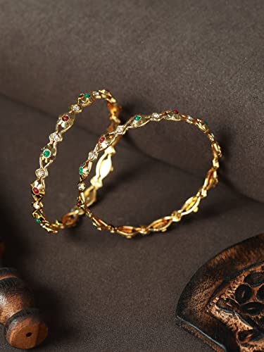Priyaasi Floral Studded Golden ColorBangle Set of 4