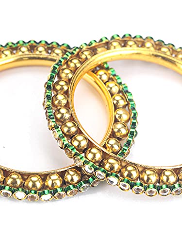 Priyaasi Green Kundan Golden ColorSet of 2 Bangle Set