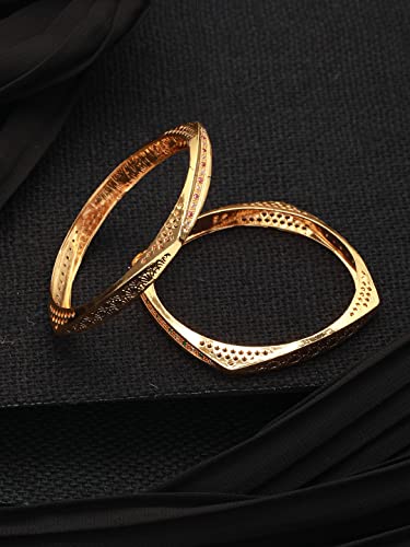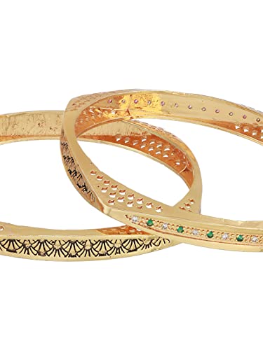 Priyaasi k & White Stone Studded Gold-ColorBangle Set of 2 For Women