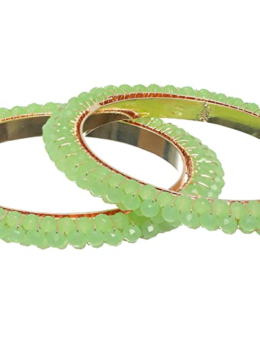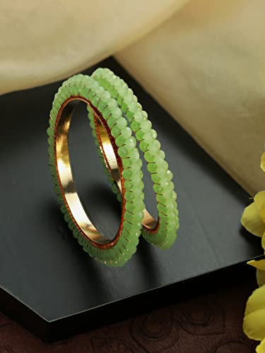 Priyaasi Mint Green Bead Studded Bangles Set of 2