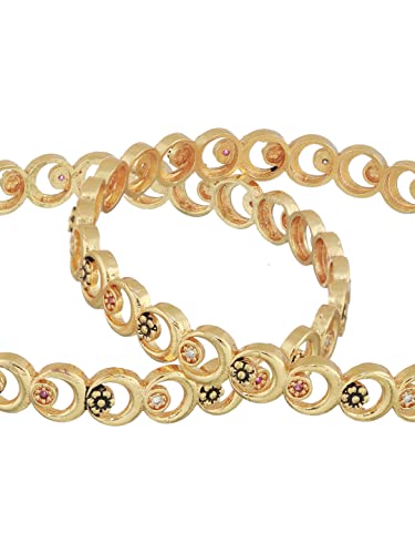Priyaasi Round Floral Design Gold-ColorBangle Set of 2 For Women