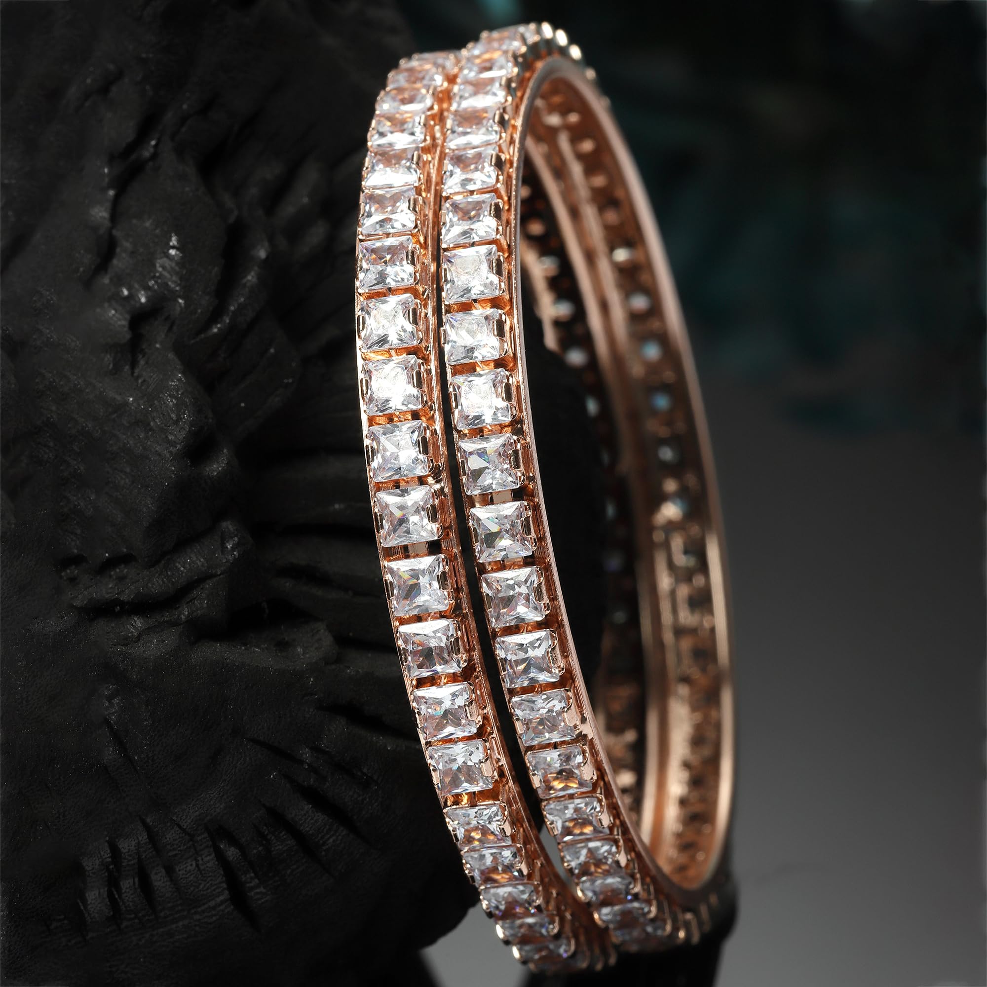 ZENEME Set of 2 Rose Gold-Plated Lime Green & Pink Artificial Stones studded Bangles for Women & Girls (2.4)