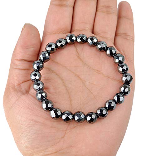 Natural Hematite Bracelet Crystal Stone 8 mm Diamond Cut Bead Bracelet for Reiki Healing and Crystal