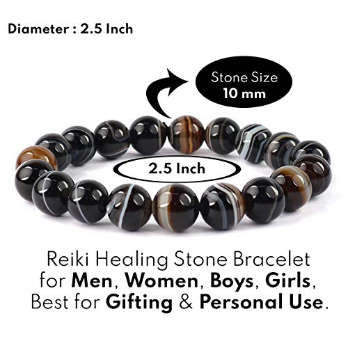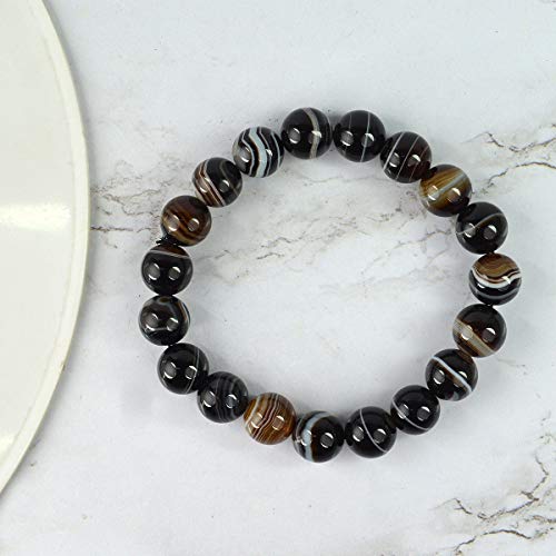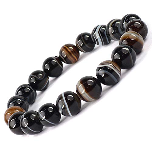 Natural Black Botswana Agate Bracelet Crystal Stone 10 mm Round Bead Bracelet for Reiki Healing and Crystal Healing Stones (Color : Black)