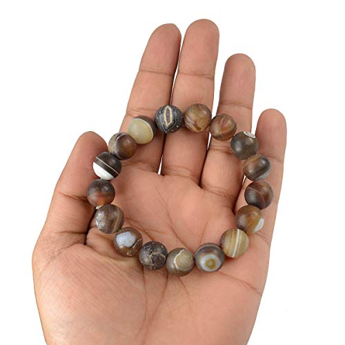 Natural Botswana Agate Matt Bracelet Crystal Stone 12mm Round Bead Bracelet for Reiki Healing and Cr