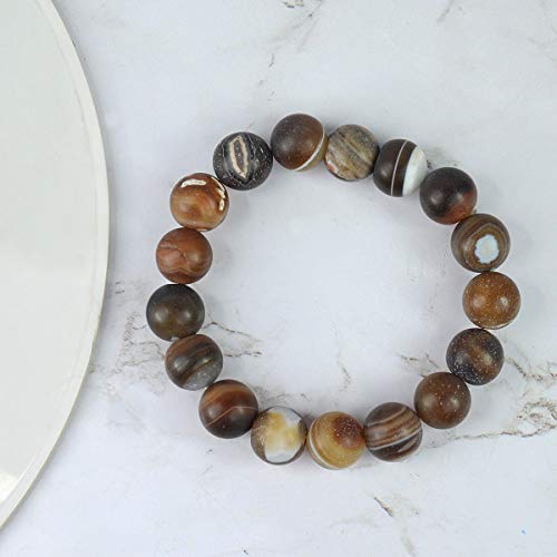 Natural Botswana Agate Matt Bracelet Crystal Stone 12mm Round Bead Bracelet for Reiki Healing and Crystal Healing Stone (Color : Multi)