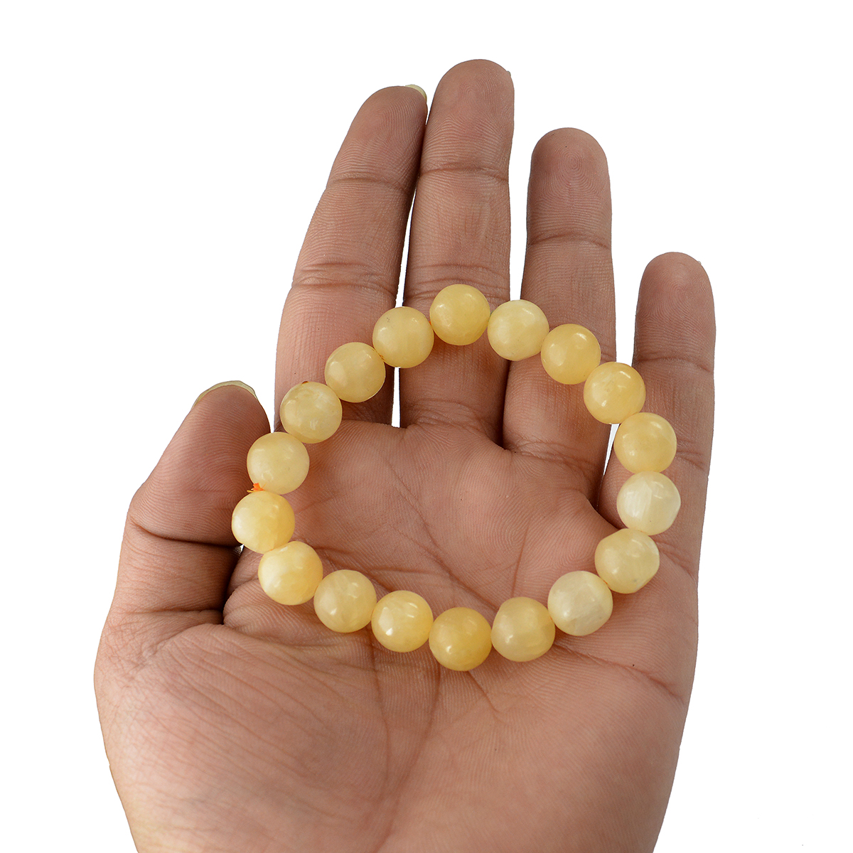 Reiki Crystal Products Natural Yellow Calcite Bracelet Crystal Stone 10mm Round Bead Bracelet for Reiki Healing and Crystal Healing Stones
