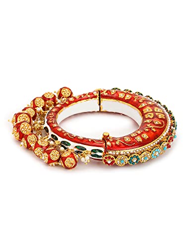 Ruby Raang Women's Mixed Metal Artificial Kundan bangles-and-bracelets - Traditional Jewellery Set for Women (Red)