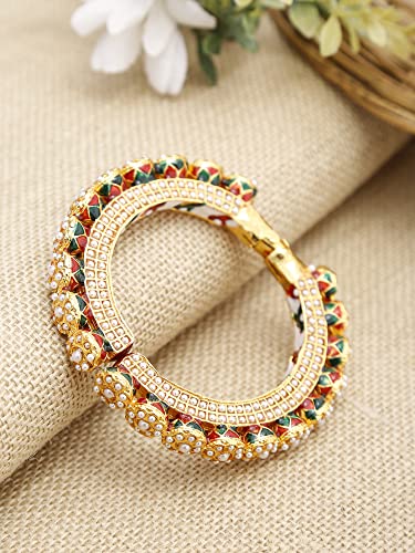 Ruby Raang Women's Mixed Metal Artificial Kundan bangles-and-bracelets - Traditional Jewellery Set for Women (White)