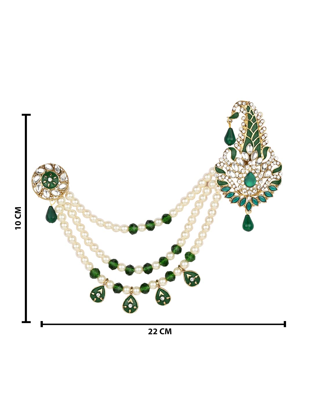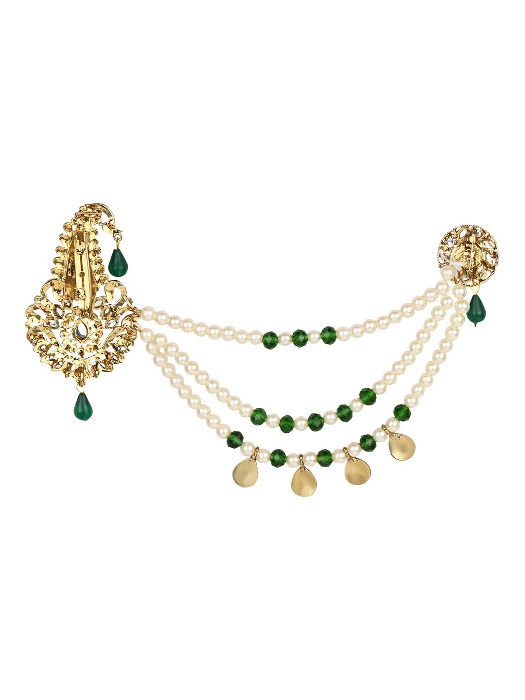 I Jewels Gold Plated Traditional Stone Pearl Drop Safa Kalangi Brooch for Groom/Men/Dulha Pagadi (SM59)