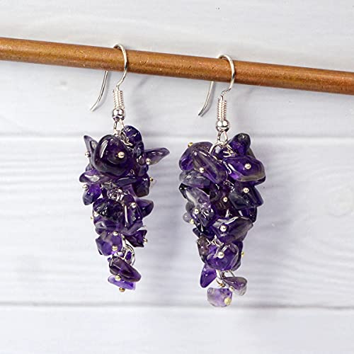 Amethyst Earrings Natural Chip Beads Earrings for Women, Girls (Purple)
