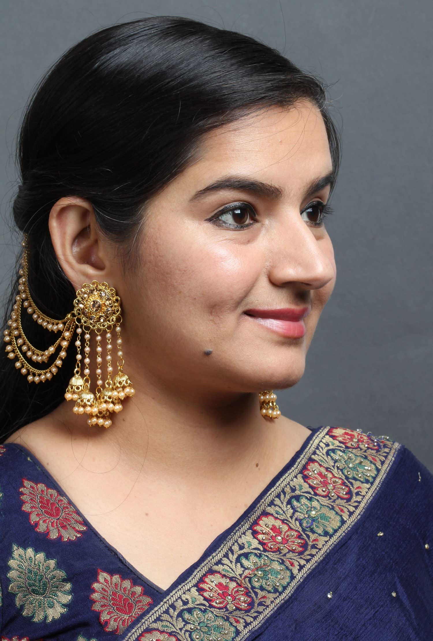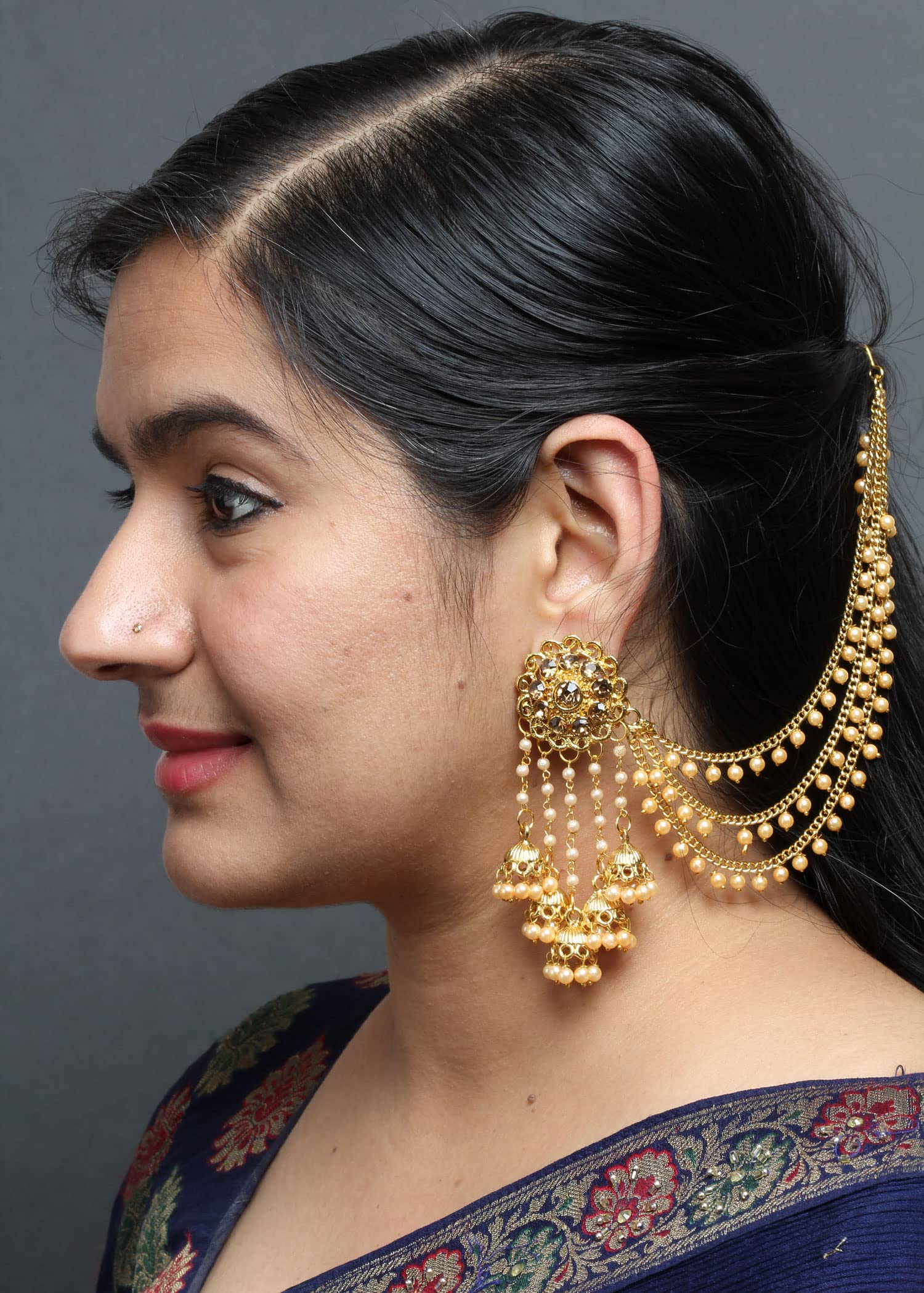 HomeFashionEarringsBindhani Fashion Bollywood Jewellery Traditional Ethnic Bridal Bride Wedding Bridesmaid Gold Plated Kundan Pearl Drop Jhumka Jhumki Head chain Indian Bahubali Earrings Jewelry For Women