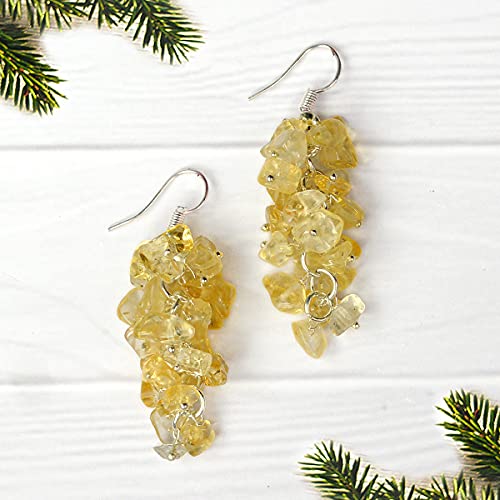 Citrine Earrings Natural Chip Beads Earrings for Women, Girls (Yellow)