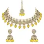 I Jewels Gold Plated Traditional Handcrafted Kundan Pearl Choker Necklace with Jhumki Earrings & Maang Tikka Set For Women/Girls