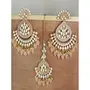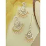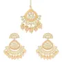 I Jewels Gold Plated Traditional Kundan & Pearl Chandbali Earrings With Maang Tikka Set For Women/Girls
