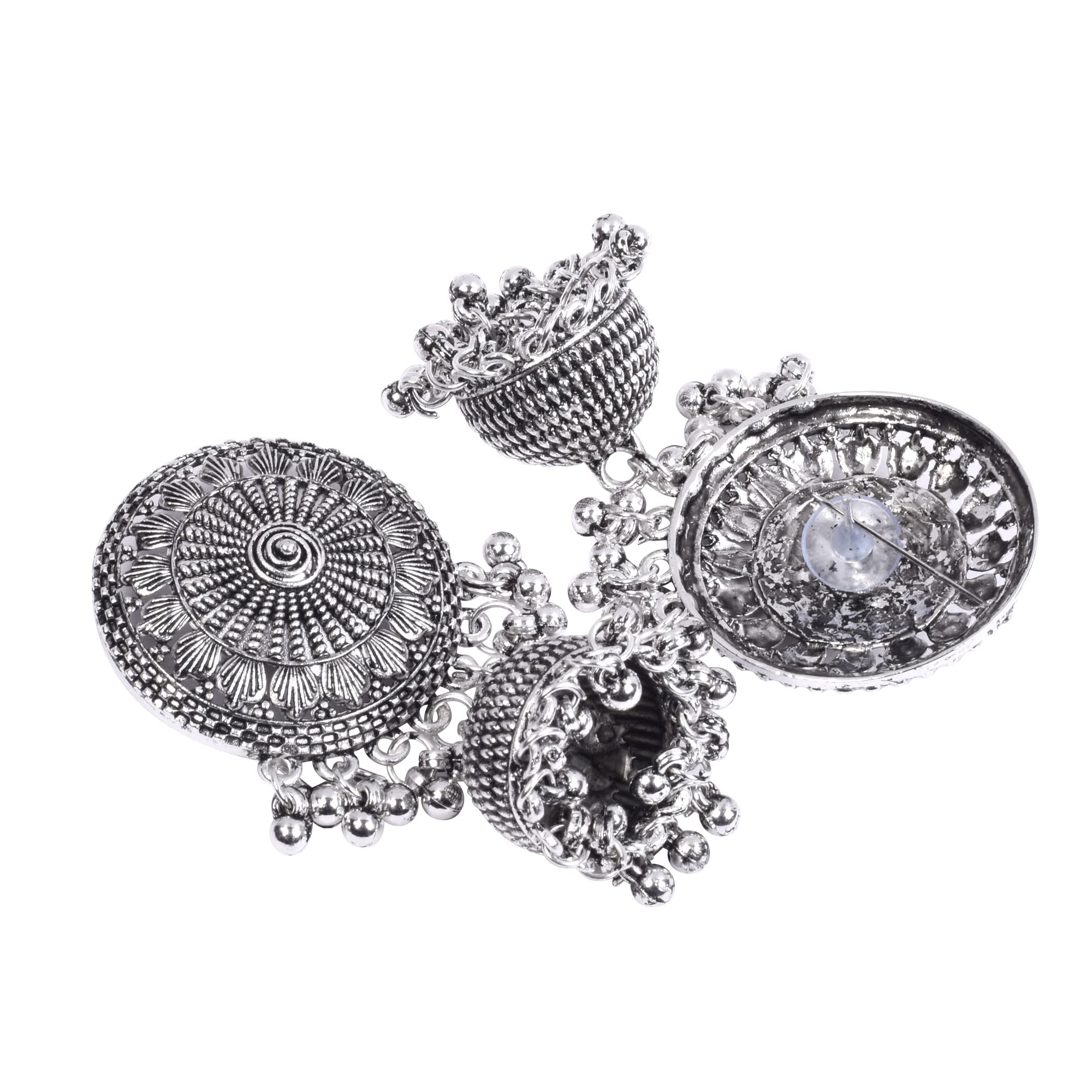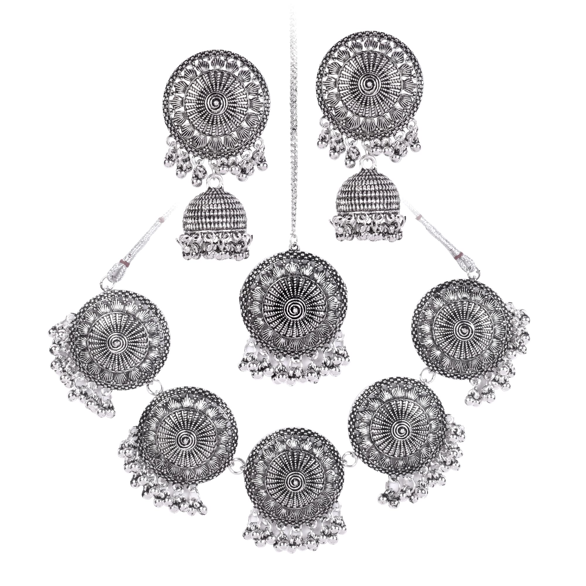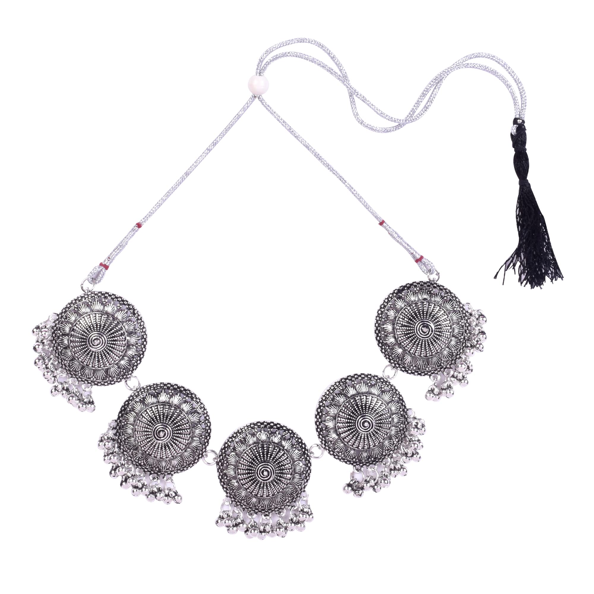 KUNDAN & MEENAKARI JEWELLERY Oxidized Choker Silver Jewellery Necklace Set With Earrings For Women and Girls design 3