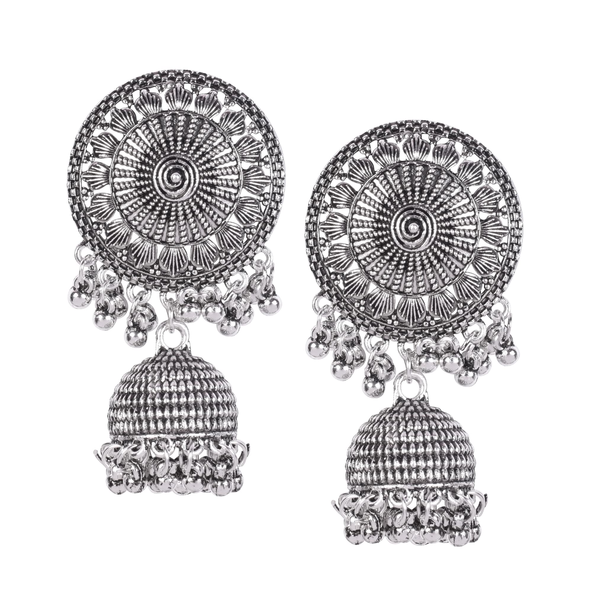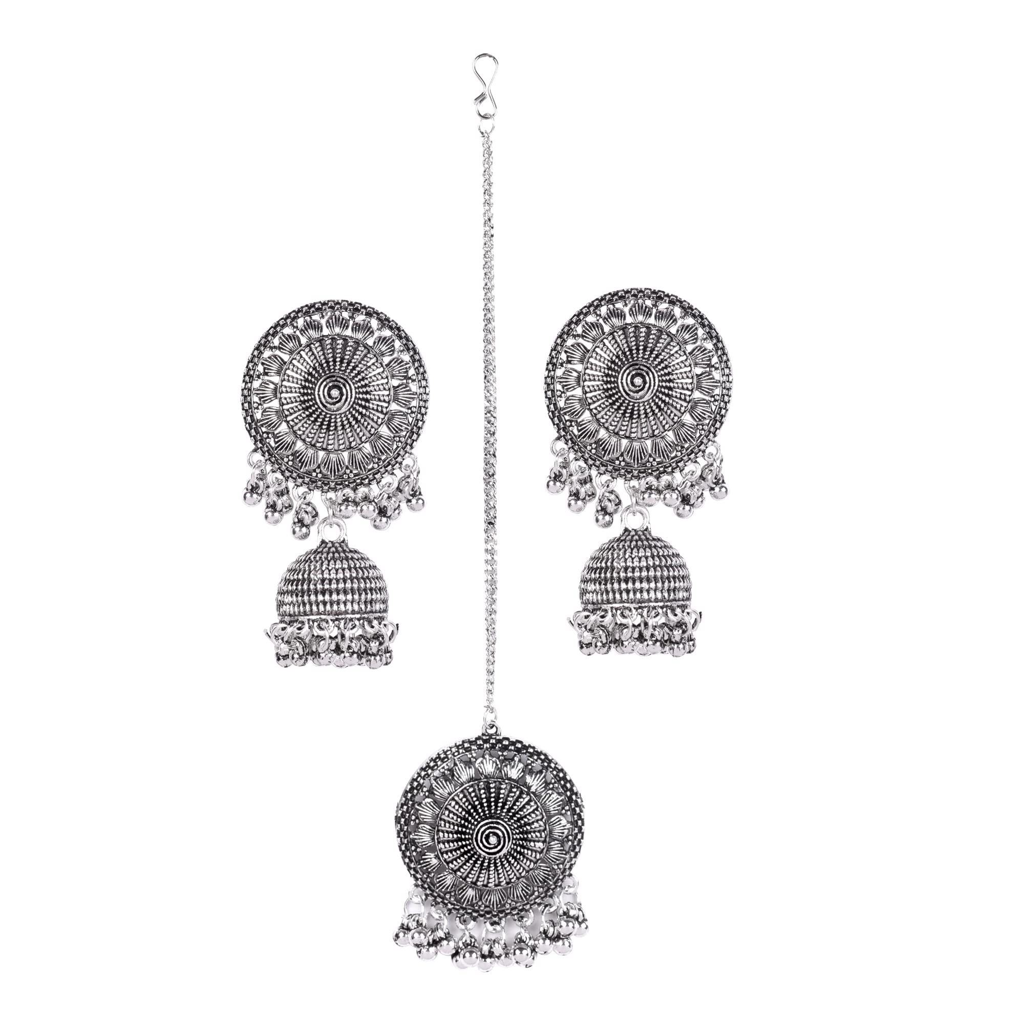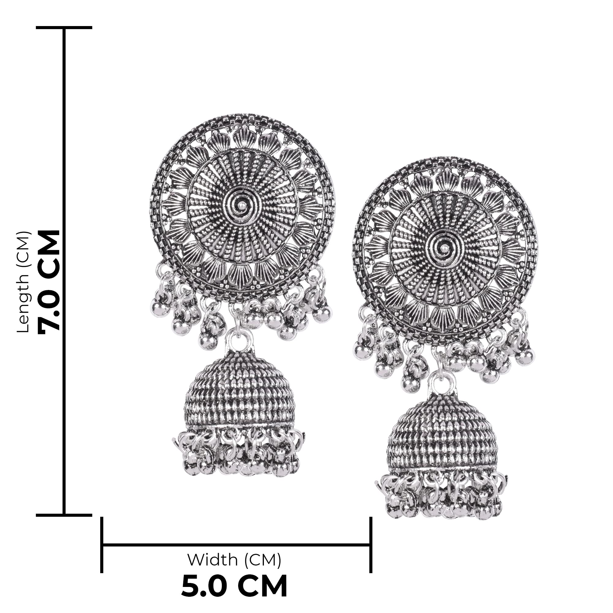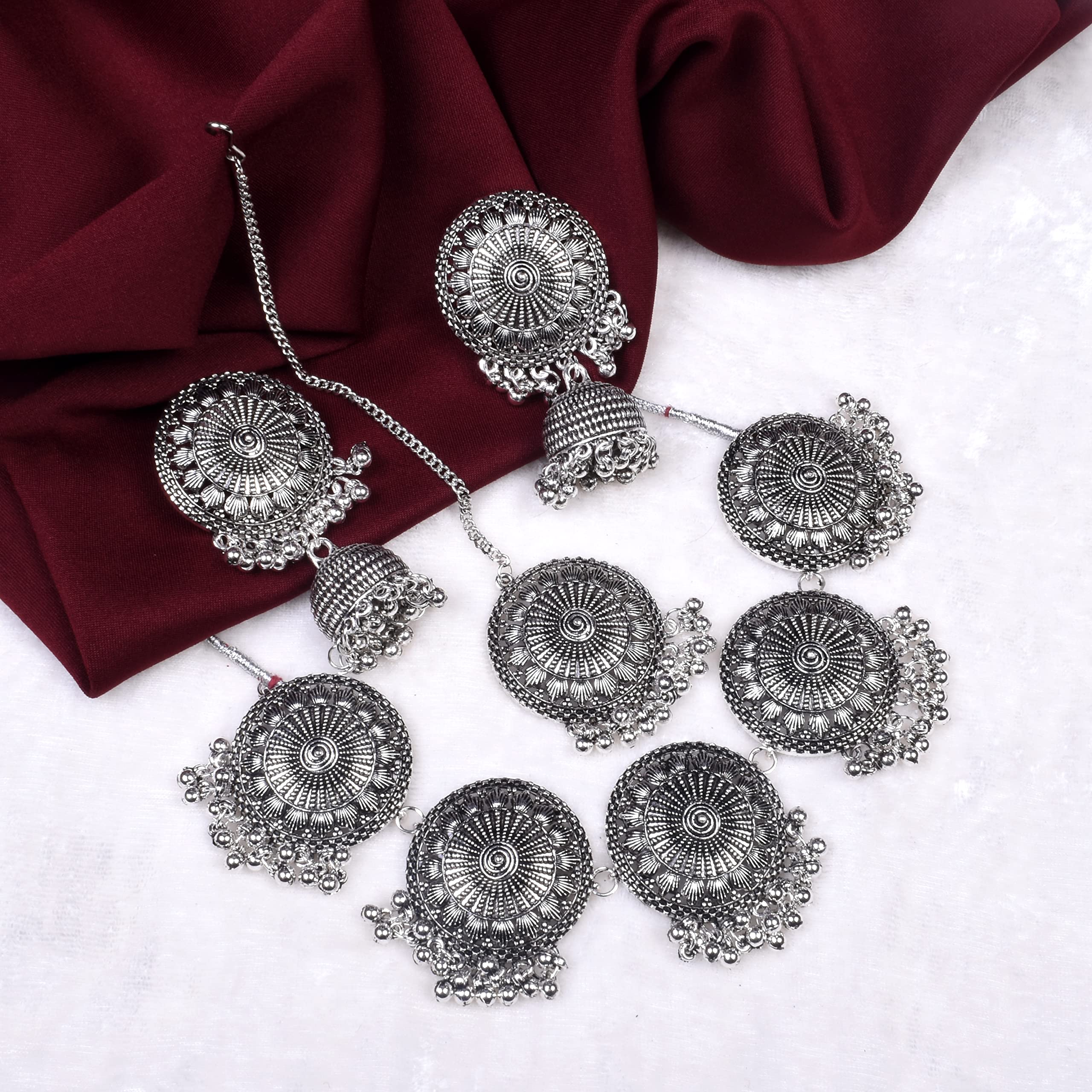 KUNDAN & MEENAKARI JEWELLERY Oxidized Choker Silver Jewellery Necklace Set With Earrings For Women and Girls design 3