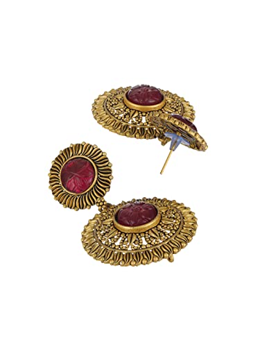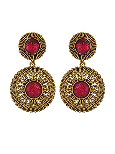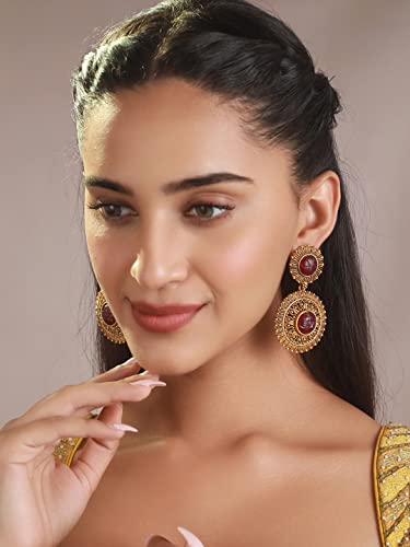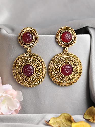 Priyaasi Red Round Floral Gold-ColorDrop Earrings