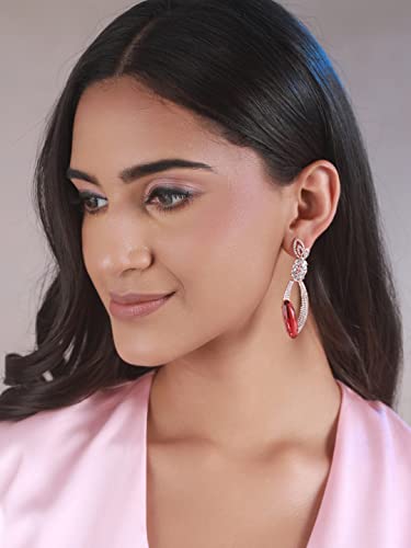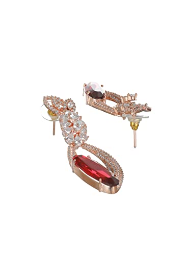 Priyaasi Wine-Toned Floral Leaf AD Rose Gold-ColorEarrings
