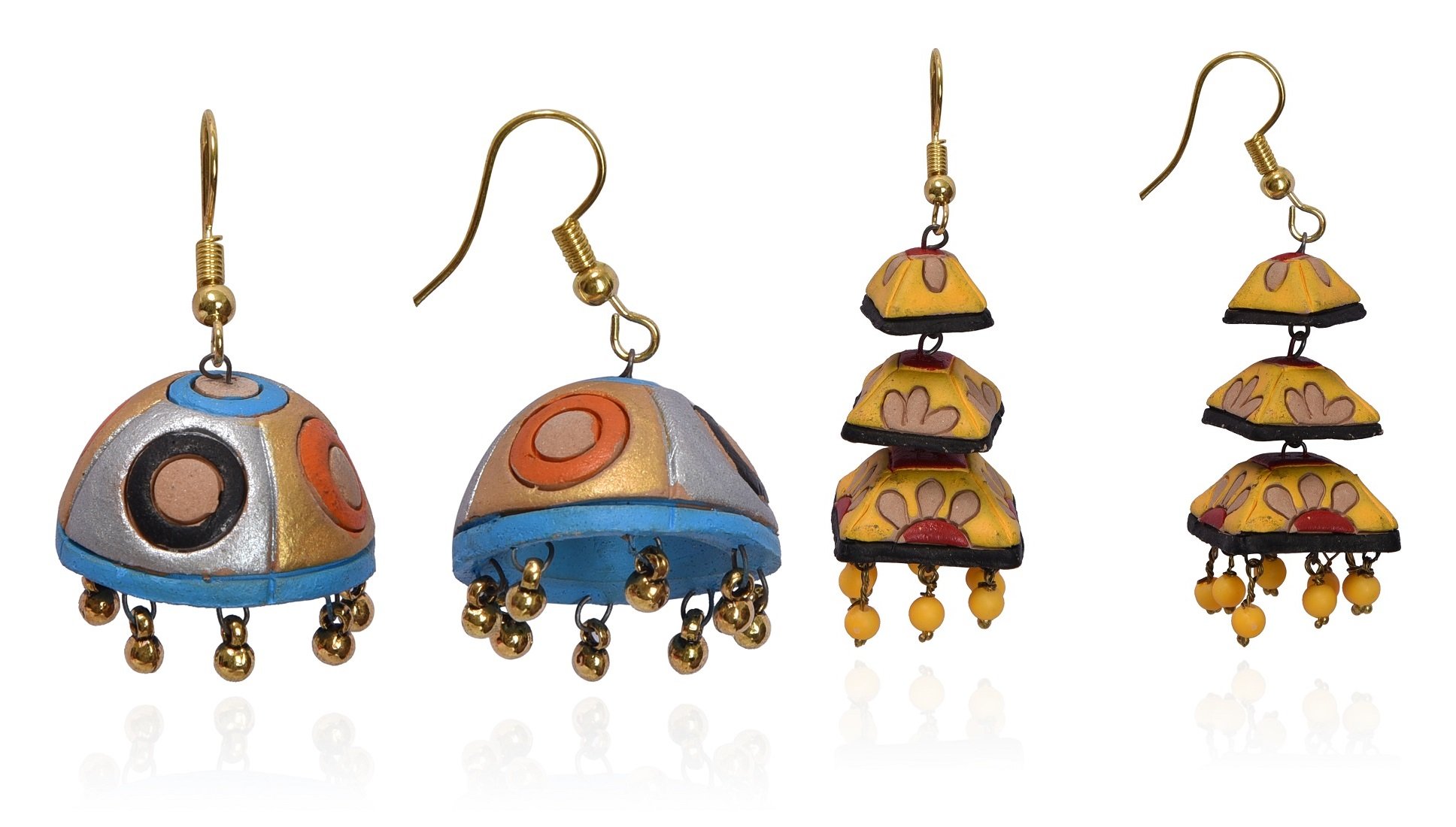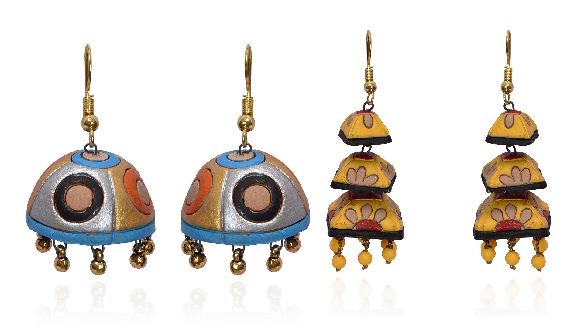 TERRACOTTA JEWELLERY Terracotta Jewel Jhumka Sets of Two for Women