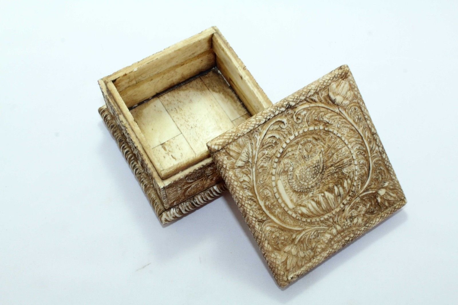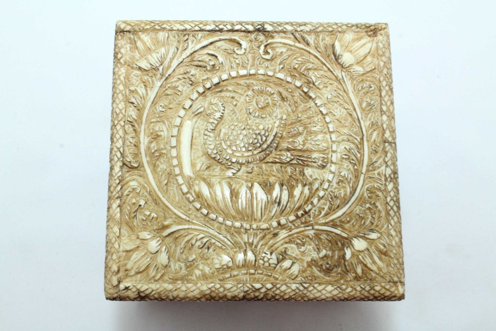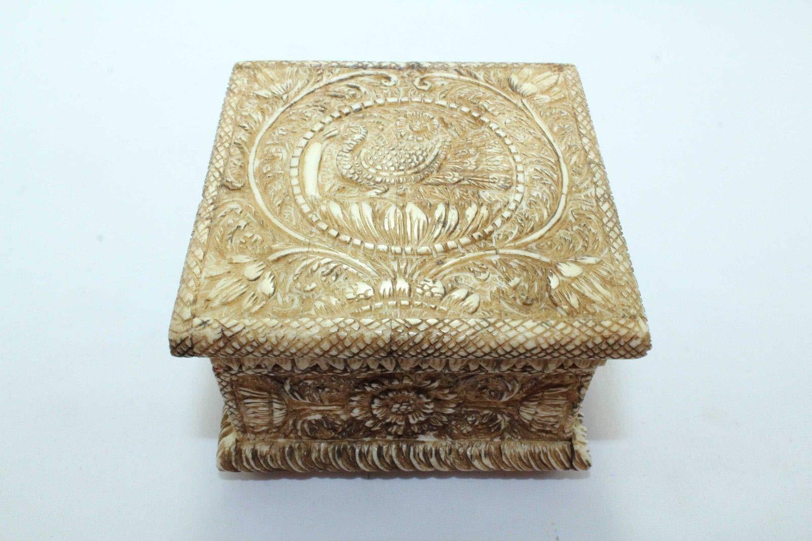 CAMEL BONE ARTICLES Handmade Beautiful Square Trinket Box Camel Bone Engraved Peacock Bird Gift Item