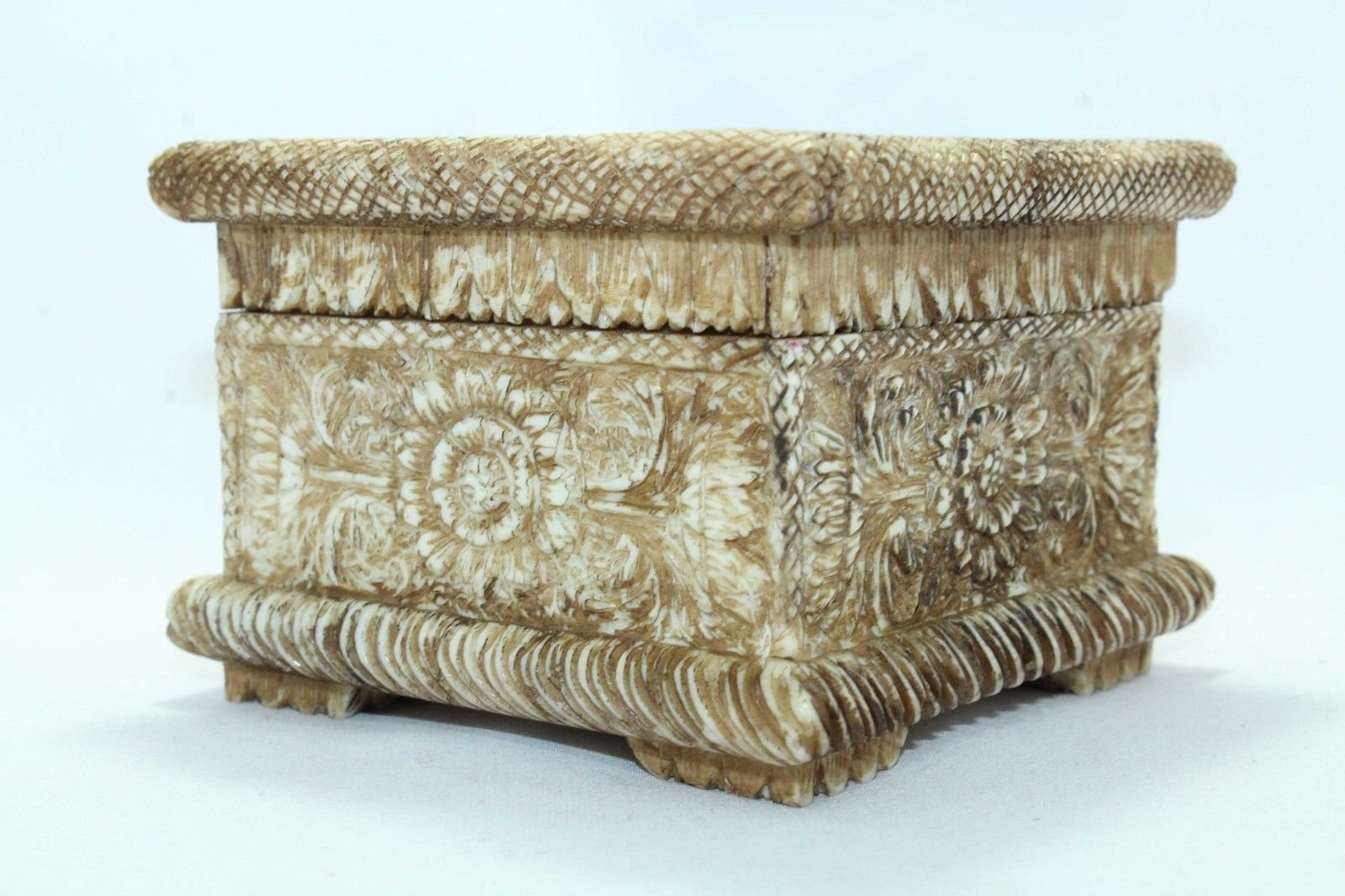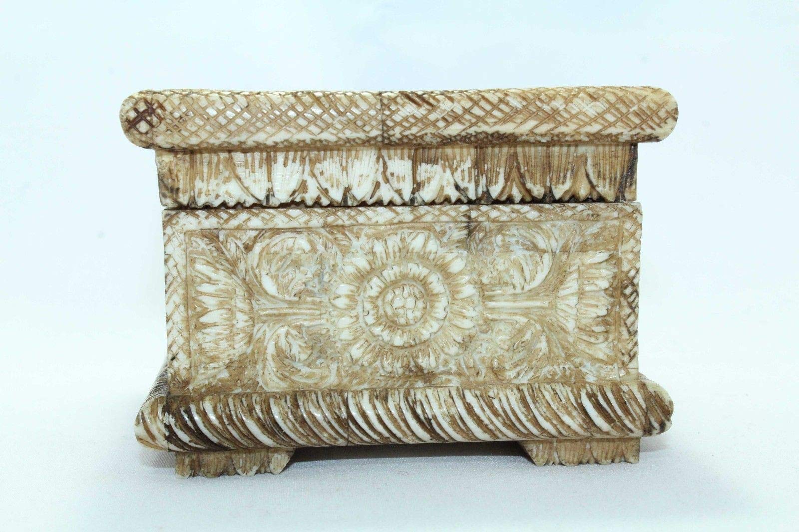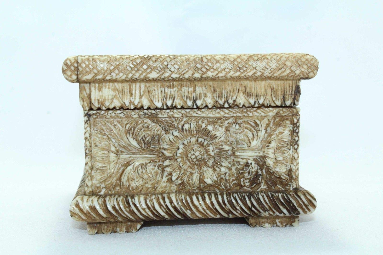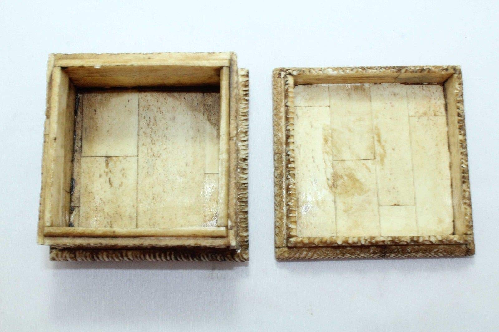 CAMEL BONE ARTICLES Handmade Beautiful Square Trinket Box Camel Bone Engraved Peacock Bird Gift Item