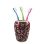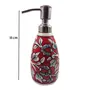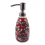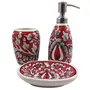 KHURJA POTTERY Bathroom Accessories Set with Soap Dish Liquid Soap Dispenser and Toothbrush Holder Khurja Pottery Decorated Floral Design (Red)