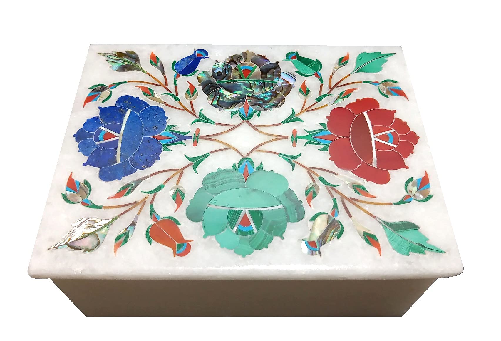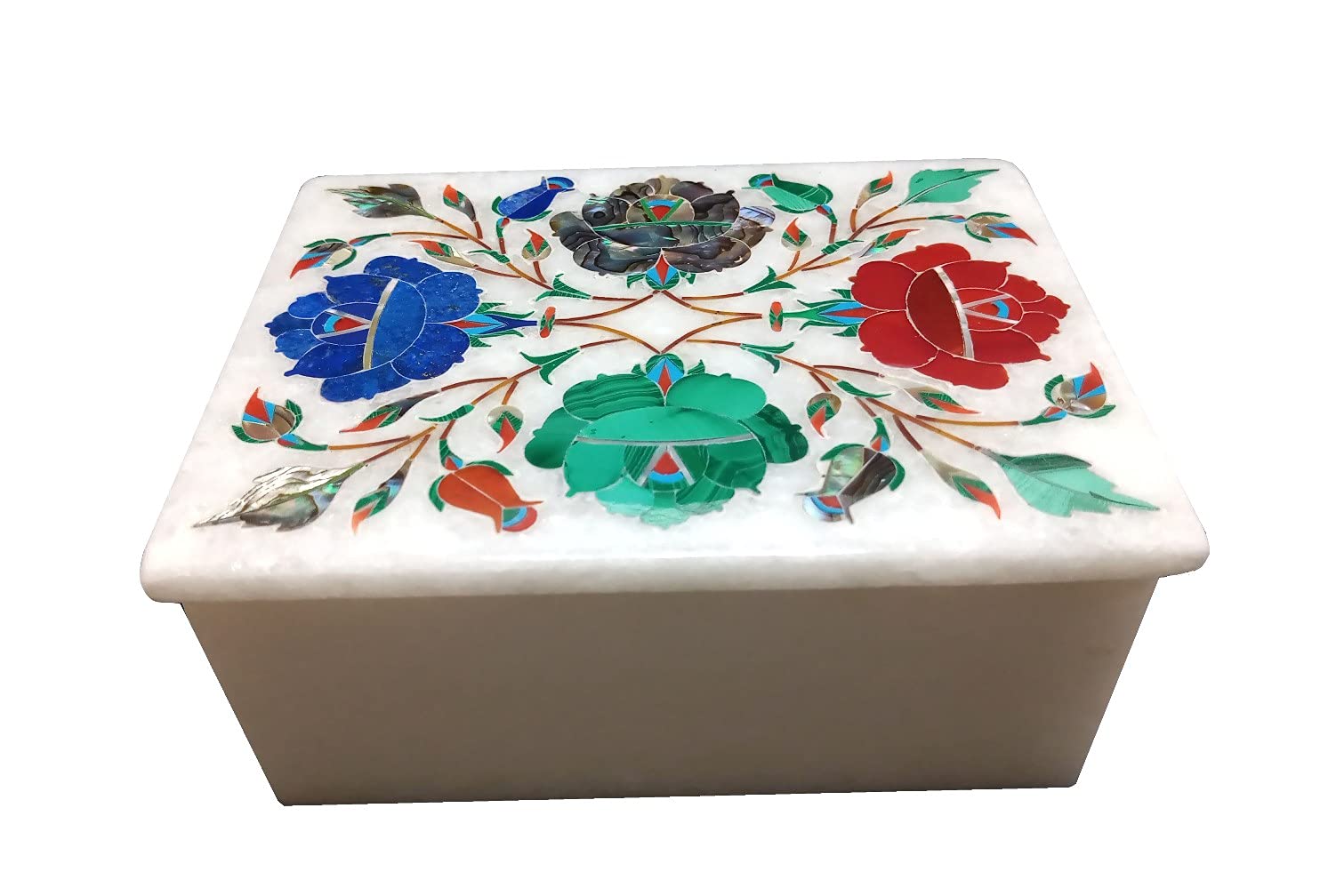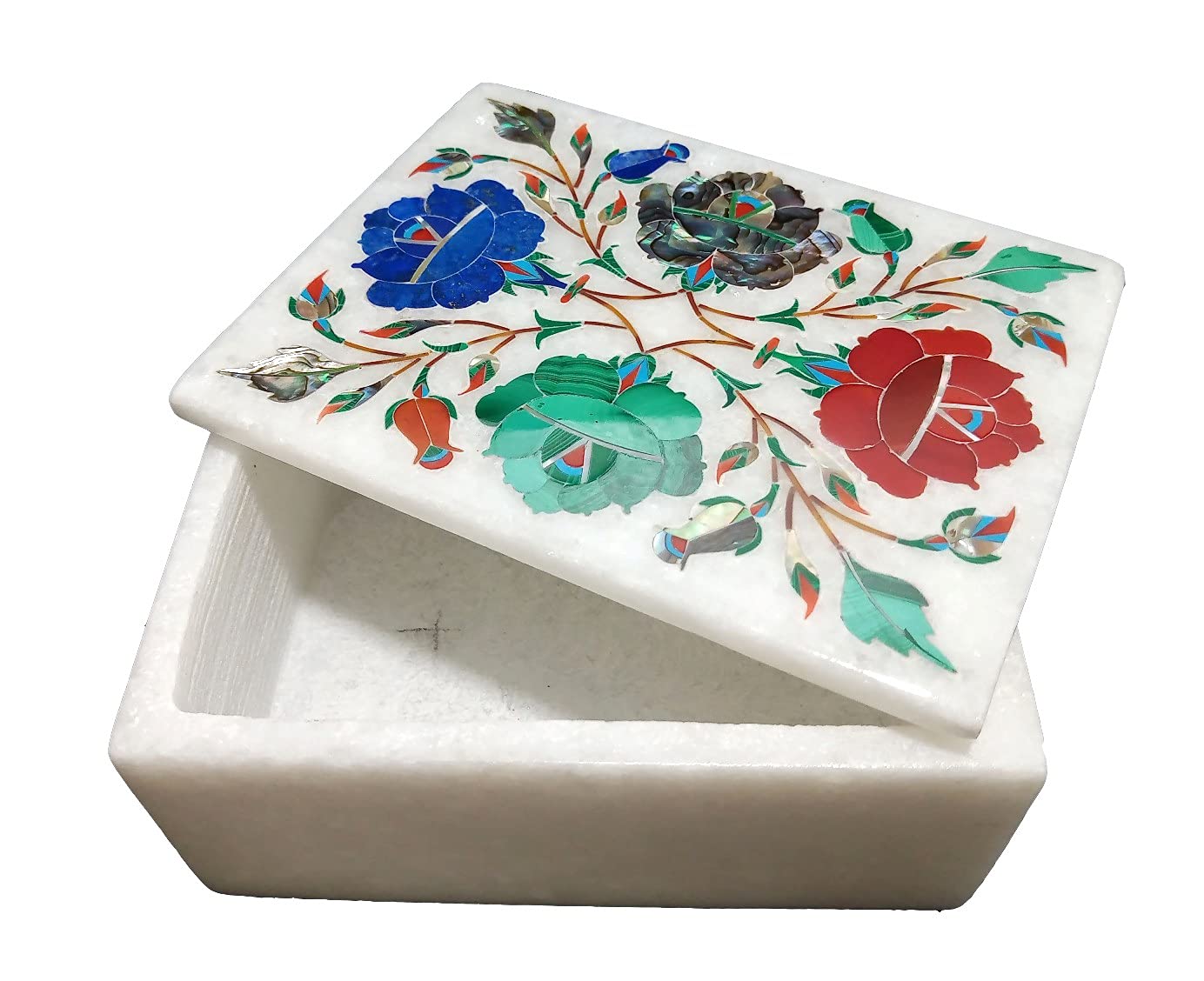 Marble Box with Handcrafted Semi Precious Gems Stone inlay Work and Perfect gifting for GirlsWomen. (Size - 3 x 4 inch)