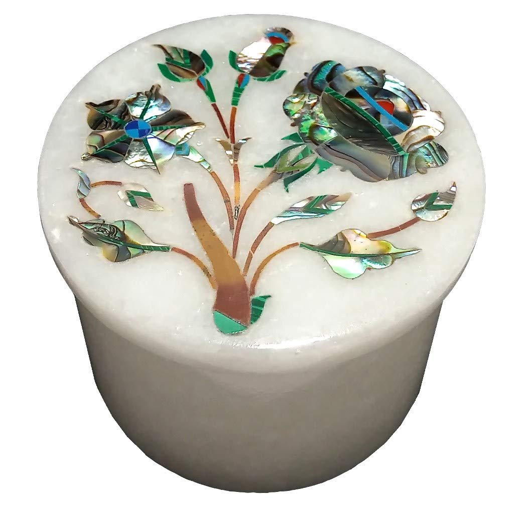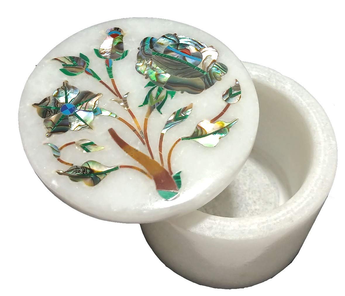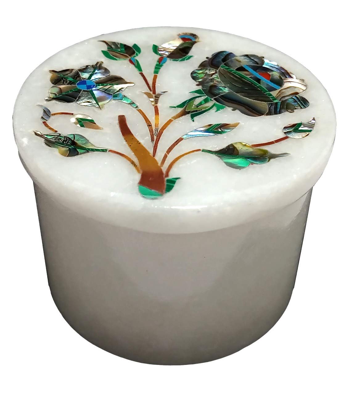 HomeFashionBoxes & HoldersMARBLE INLAY ART AGRA - PACCHIKARI Handcrafted Marble Box with inlay Work Perfect for Ring/Earring and Gifts. Size - 2 x 2 inch Round