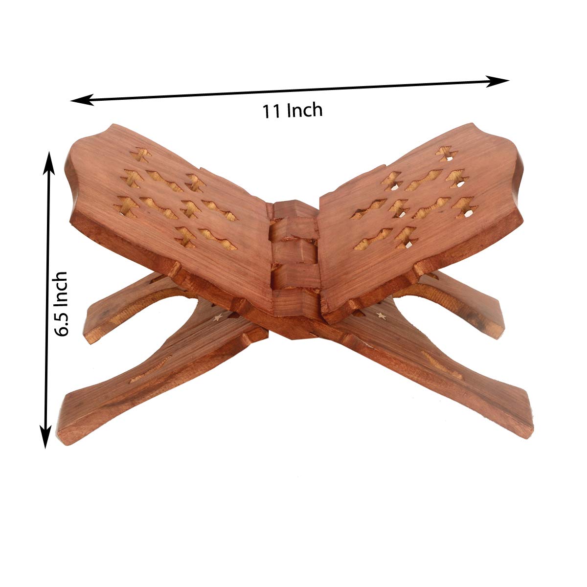 Size; 13 Inches. Made of premium high grade Sheesham Wood. This Sheesham Hand Crafted Wooden Book Stand/Holder/Rest/Keep can be used at Home/Work Space/Religious Places for studying/reading/writing related purposes. You can also gift this product to your