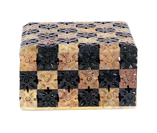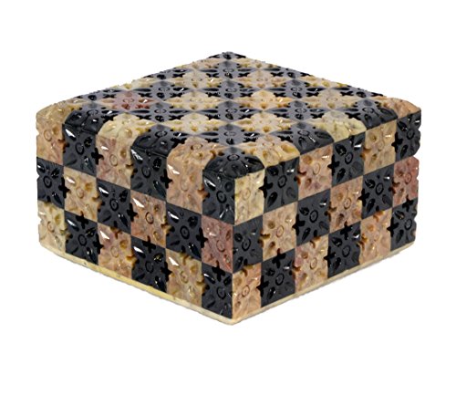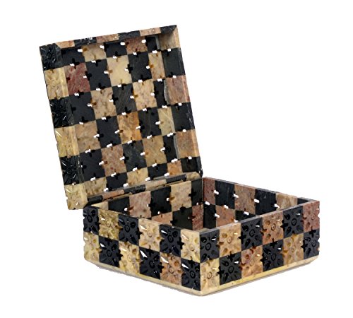Soap Stone Carved Jwellery Box Chess Style (11.5cm X11.5cm X6.5cm)
